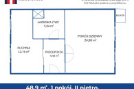 Istnieje możliwość zmiany funkcjonalności pomieszczeń i rezygnując z oddzielnej kuchni możemy uzyskać sypialnię a w pokoju dziennym stworzyć aneks kuchenny.