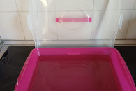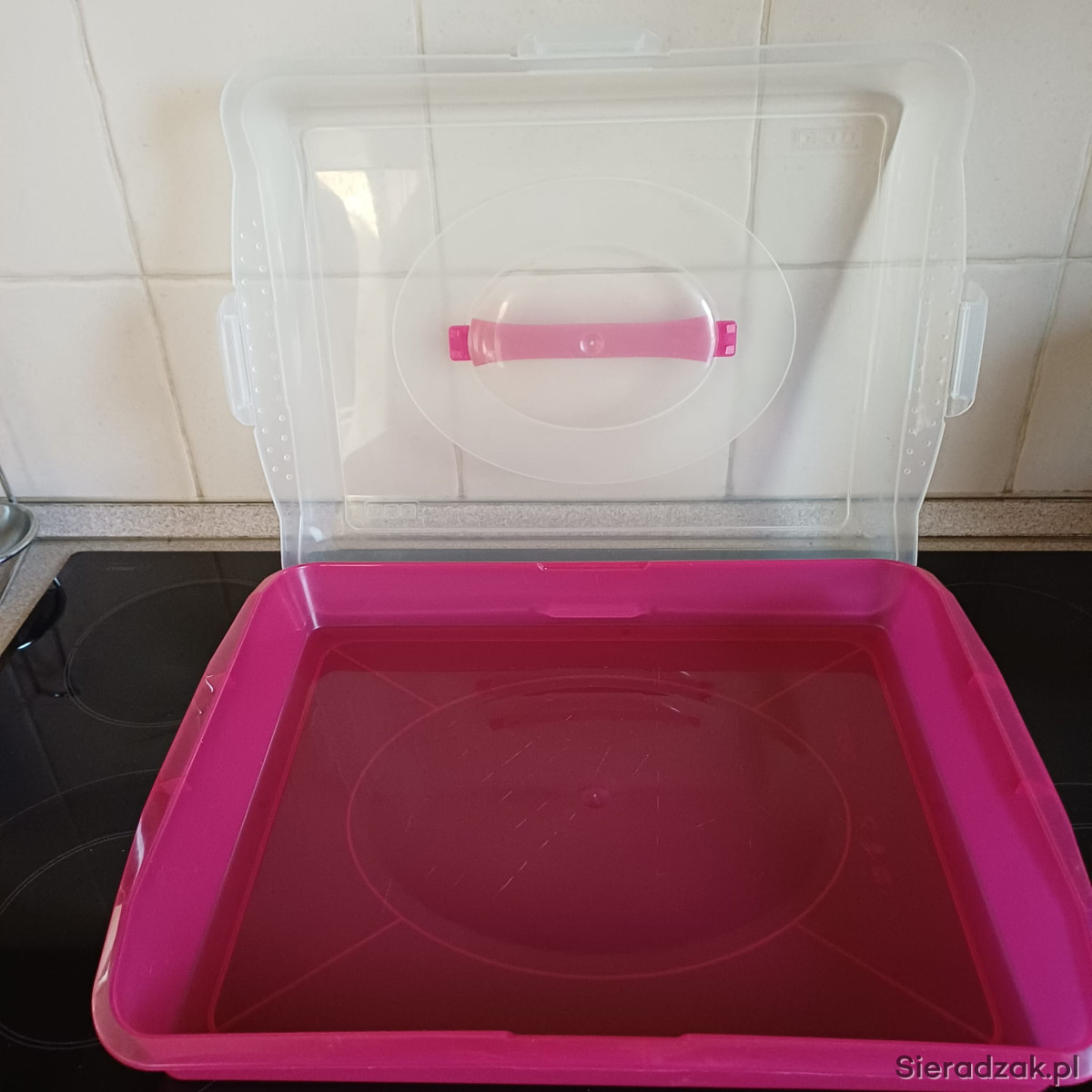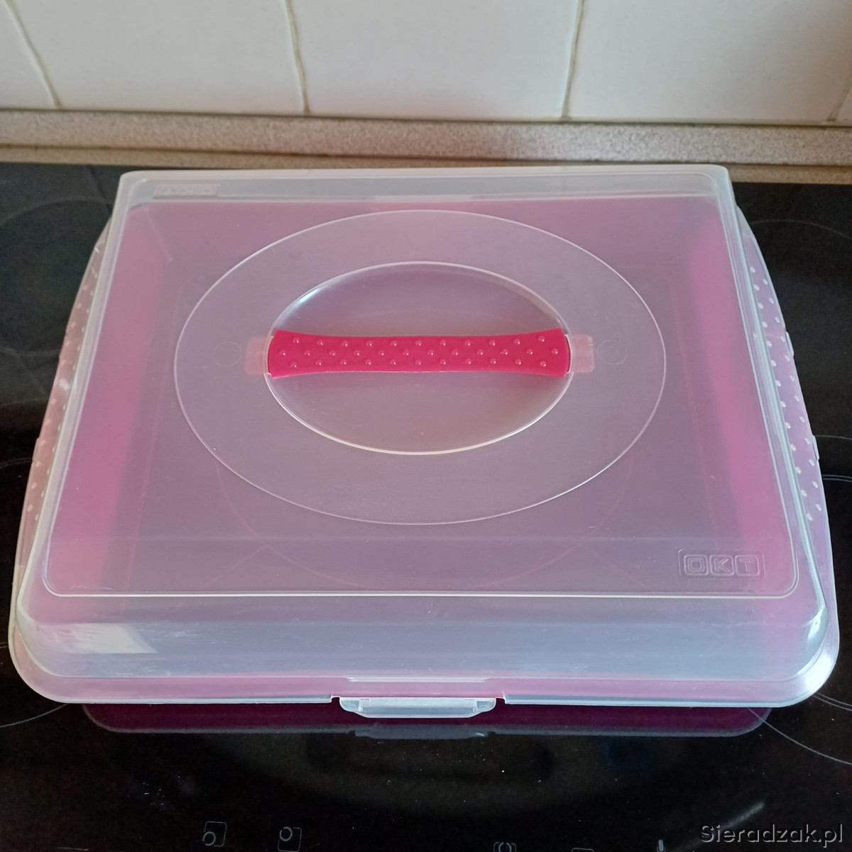 Pojemnik na ciasto prostokątny z pokrywą zapinaną.