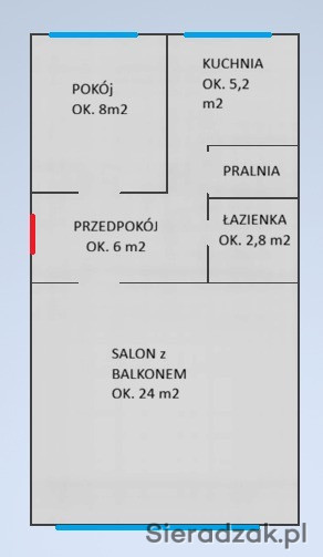 -korytarza z którego jest bezpośrednie wejscie do pokoi i łazienki