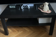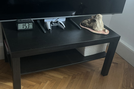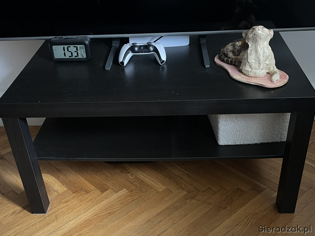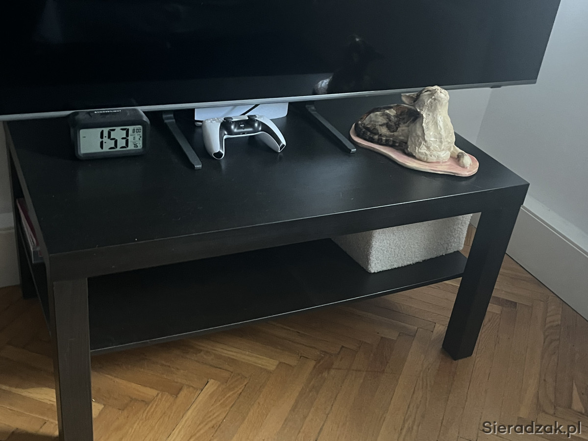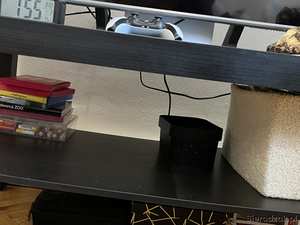 Praktyczna czarna szafka RTV/TV z półką. Może służyć jako stolik pod telewizor lub do przechowywania sprzętu audio-wideo. Posiada solidną konstrukcję i jest w dobrym stanie użytkowym.