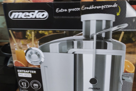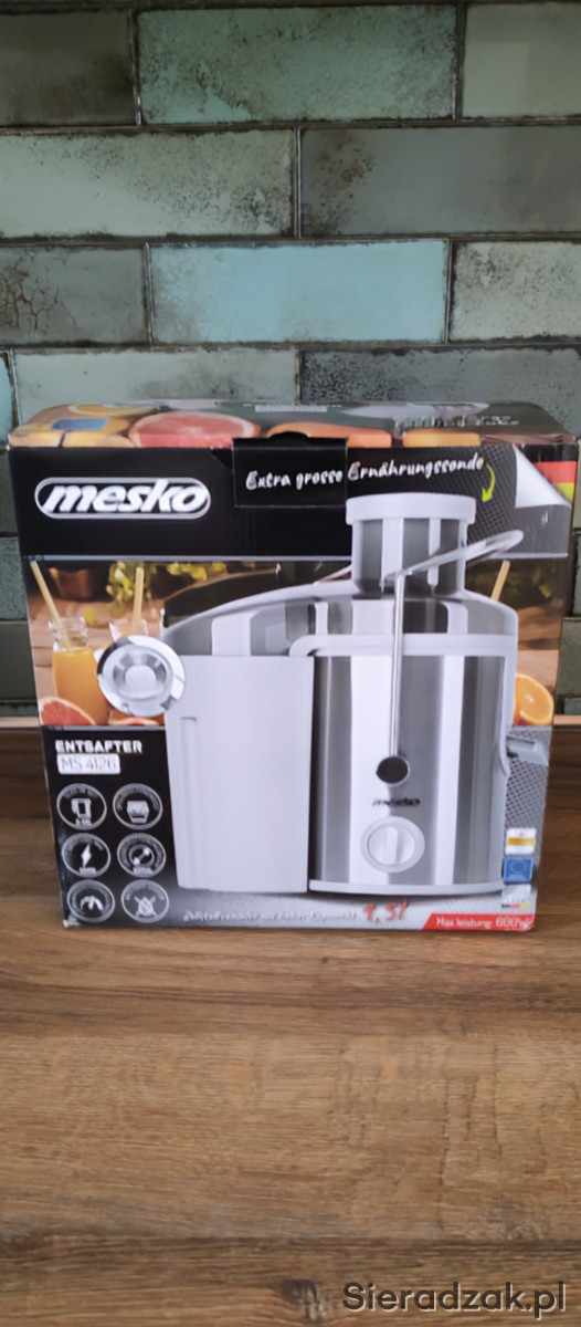 Nowa sokowirówka. Sito że stali nierdzewnej, blokada bezpieczeństwa. Pojemnik 1,5 l na miąższ. Pojemnik na sok 0,45 l.