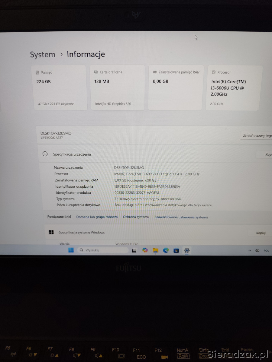Witam sprzedam laptop Fujitsu 15.6cala procesor i3 , 8gb ram 256gb dysk SSD windows 11 , kamera, HDMI, USB VGA bateria trzyma ponad 2 godziny ładowarka w komplecie. Laptop sprawny szybki i gotowy do pracy.