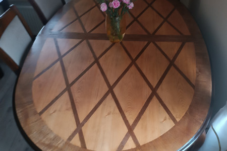 Witam mam do sprzedania bardzo ładny I solidny duży rozkładany stół drewniany wraz ze stołkiem kawowym wymiary stołu 198+44/123/73 stolik 120/80/50 odbiór osobisty zapraszam